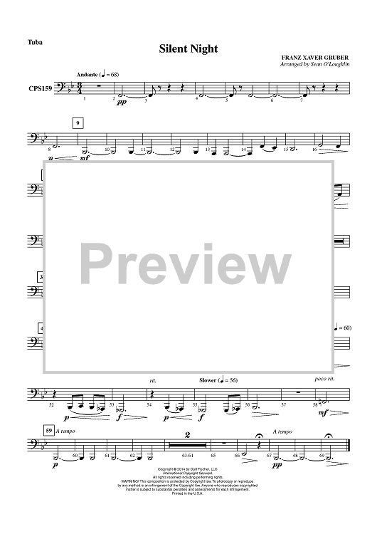 Digital Sheet Music for Silent Night - Tuba by Franz Xaver Gruber, Sean O'Loughlin scored for Concert Band; id:451163