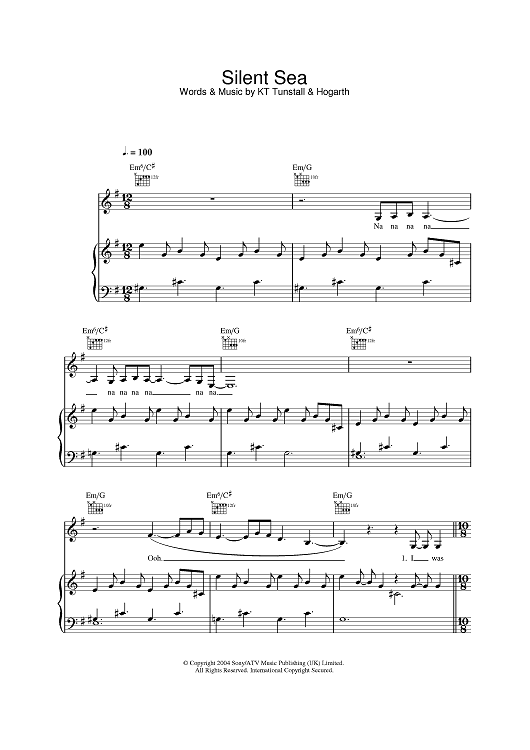 Digital Sheet Music for Silent Sea by KT Tunstall, Hogarth scored for Piano/Vocal/Chords; id:385341