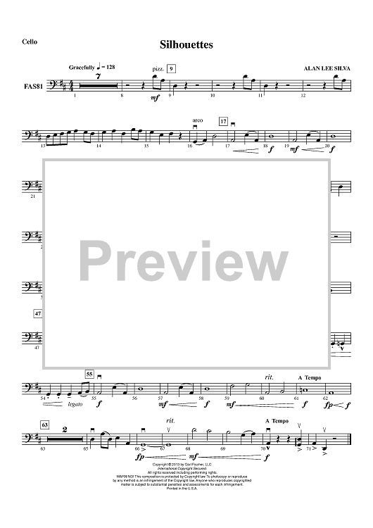 "Silhouettes - Cello" Sheet Music by Alan Lee Silva