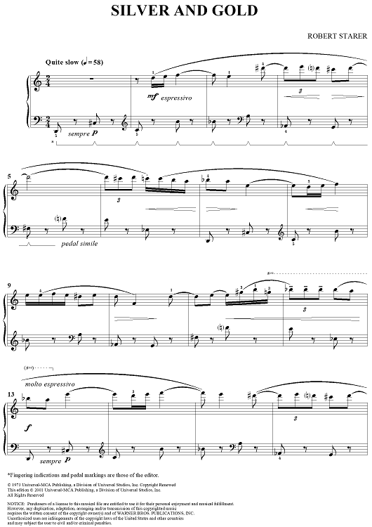 Digital Sheet Music for Silver and Gold by Robert Starer scored for Piano Solo; id:287507