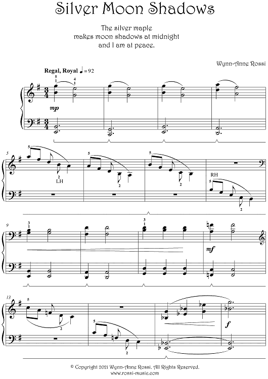 "Silver Moon Shadows" Sheet Music by Wynn-Anne Rossi