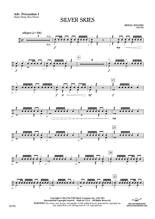 Digital Sheet Music for Silver Skies - Advanced Percussion 1 by Mekel Rogers scored for Concert Band; id:445998