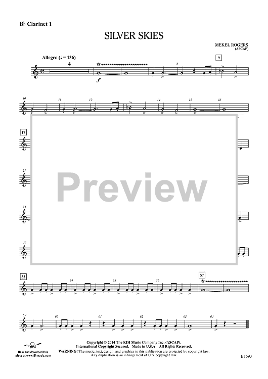 Digital Sheet Music for Silver Skies - Bb Clarinet 1 by Mekel Rogers scored for Concert Band; id:445982