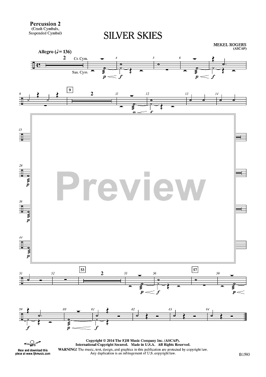 Digital Sheet Music for Silver Skies - Percussion 2 by Mekel Rogers scored for Concert Band; id:445999
