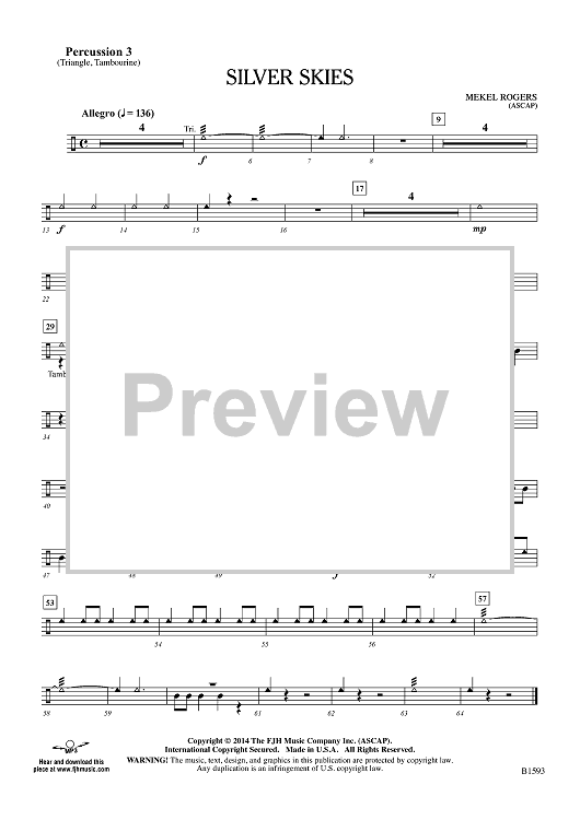 Digital Sheet Music for Silver Skies - Percussion 3 by Mekel Rogers scored for Concert Band; id:446000