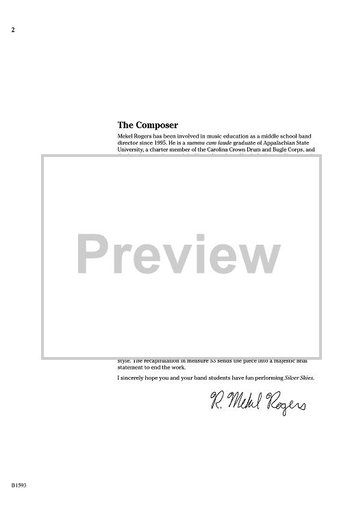 Digital Sheet Music for Silver Skies - Score Cover by Mekel Rogers scored for Concert Band; id:445978