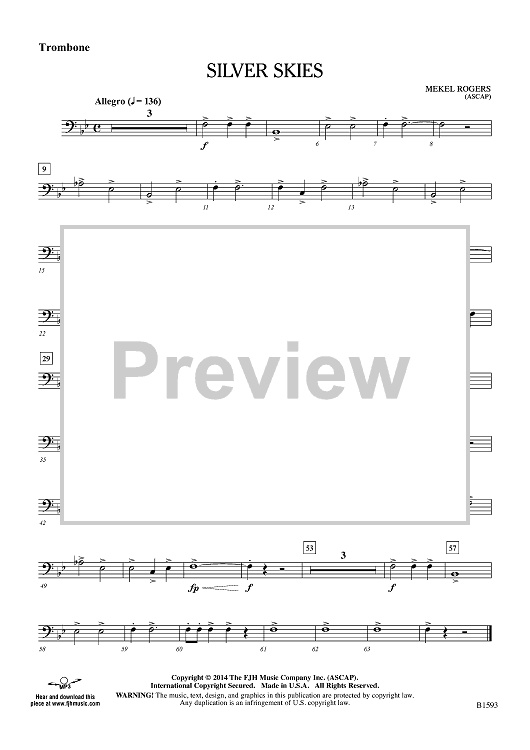 "Silver Skies - Trombone" Sheet Music by Mekel Rogers