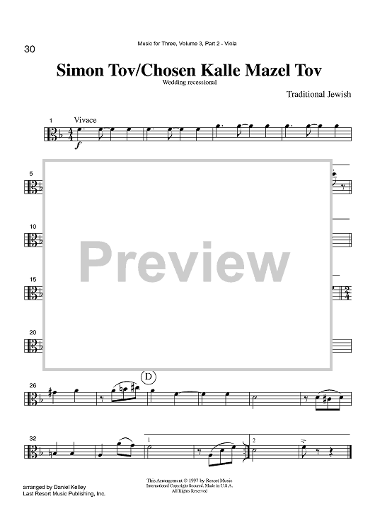 Digital Sheet Music for Simon Tov/Chosen Kalle Mazel Tov - Wedding recessional - Part 2 Viola by , Daniel Kelley, Traditional Jewish scored for Instrumental Trio; id:424143