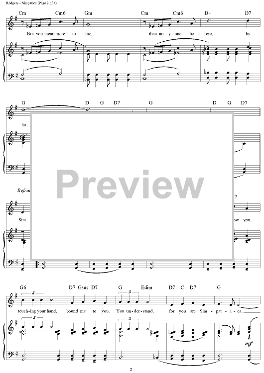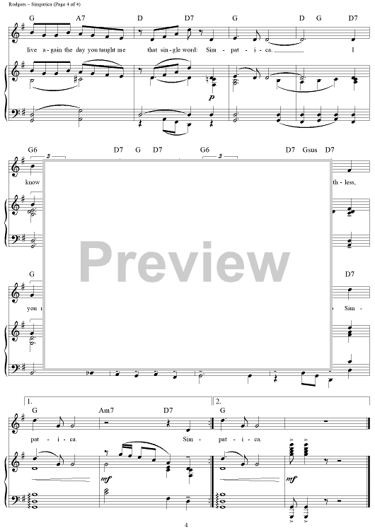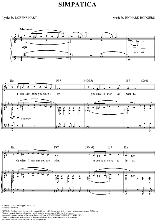 Digital Sheet Music for Simpatica by Richard Rodgers, Lorenz Hart scored for Piano/Vocal/Chords; id:313998
