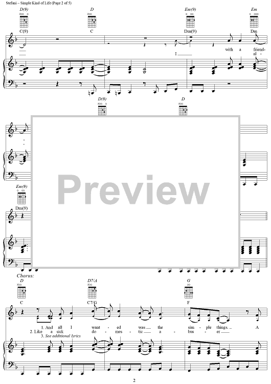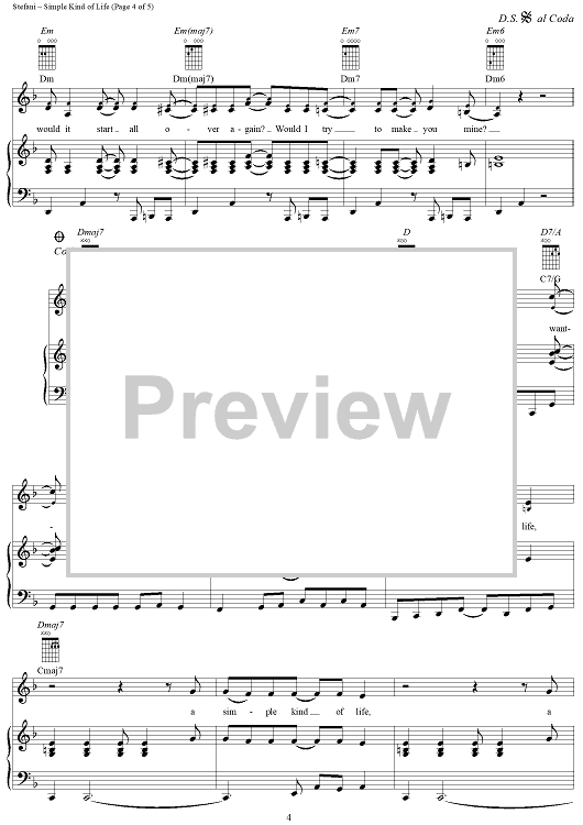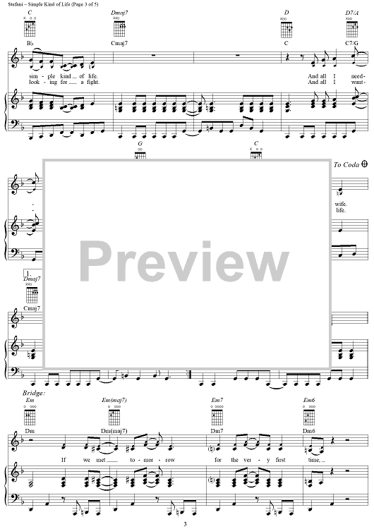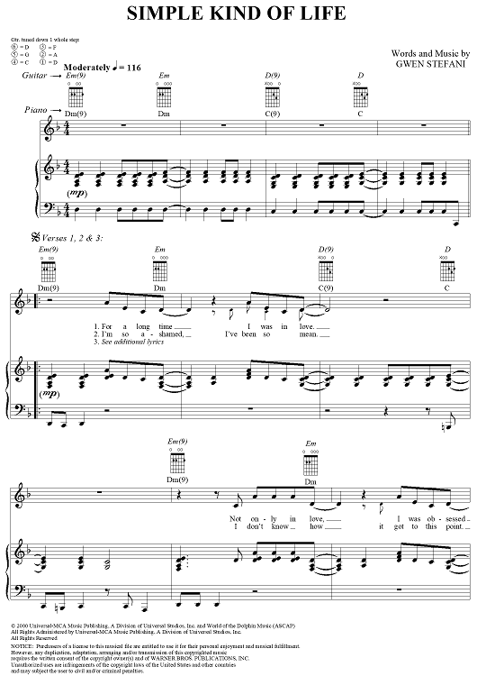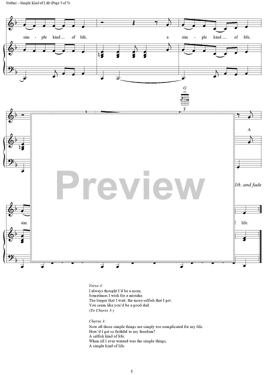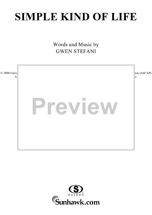 Digital Sheet Music for Simple Kind of Life by No Doubt, Gwen Stefani scored for Piano/Vocal/Chords; id:241763