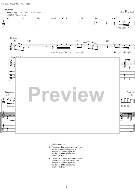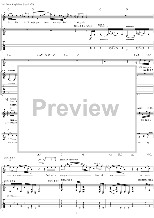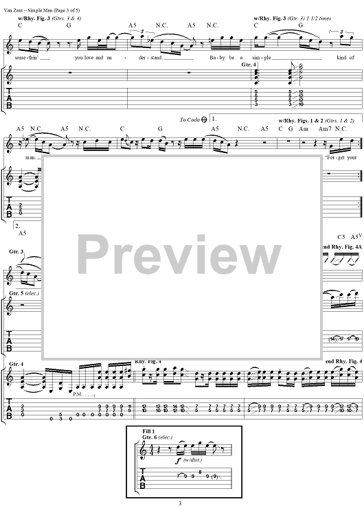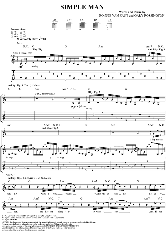 "Simple Man" Sheet Music by Lynyrd Skynyrd