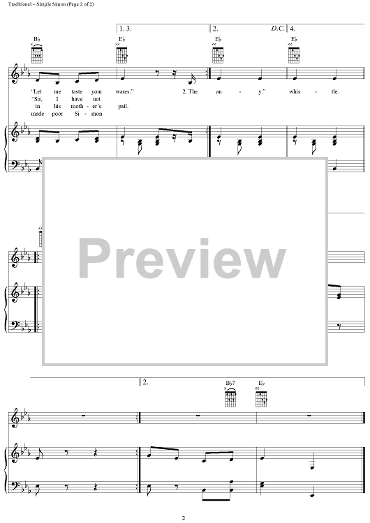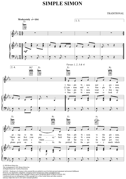 Digital Sheet Music for Simple Simon by Traditional scored for Piano/Vocal/Chords; id:289183