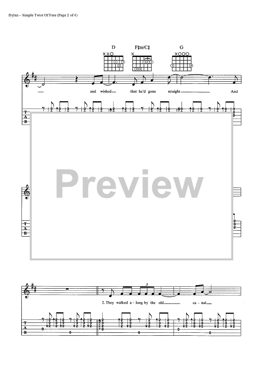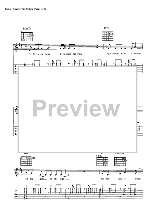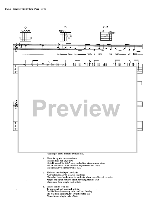 Digital Sheet Music for Simple Twist of Fate by Bob Dylan scored for Guitar Tab/Vocal/Chords; id:445473