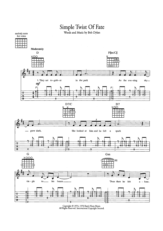 "Simple Twist of Fate" Sheet Music by Bob Dylan