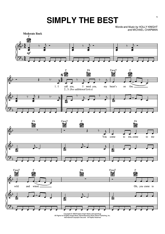 Digital Sheet Music for Simply The Best by Tina Turner, Holly Knight, Mike Chapman scored for Piano/Vocal/Chords; id:397332