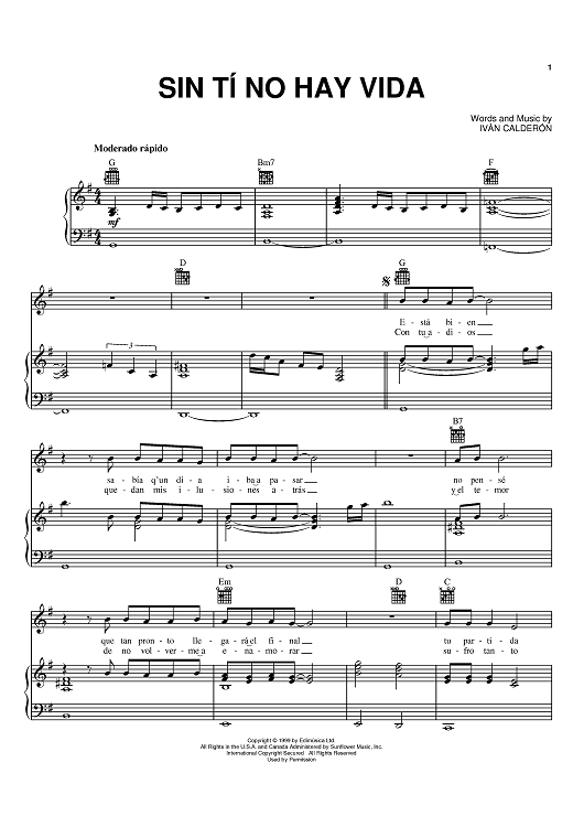 "Sin Tí No Hay Vida" Sheet Music by Ivan Calderon