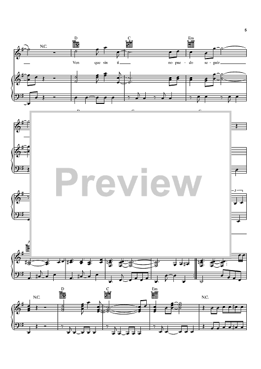 Digital Sheet Music for Sin Tí No Hay Vida by Ivan Calderon scored for Piano/Vocal/Chords; id:370457