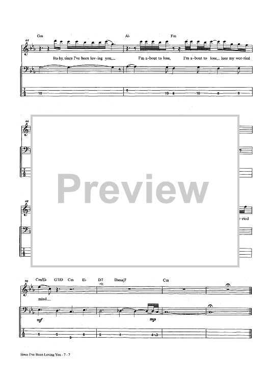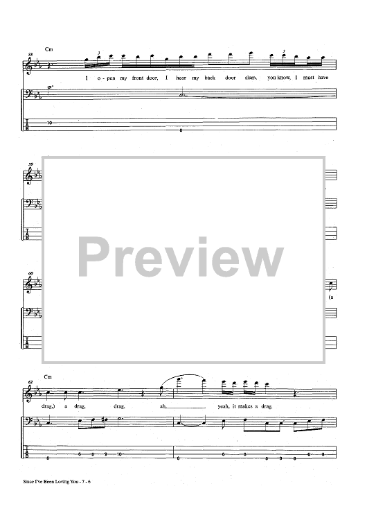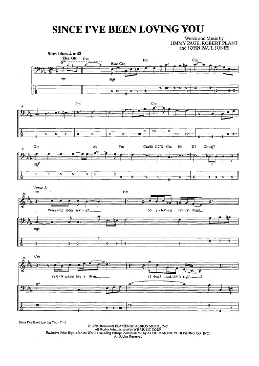 Digital Sheet Music for Since I've Been Loving You by Jimmy Page, John Paul Jones, Led Zeppelin, Robert Plant scored for Bass Tab; id:444044