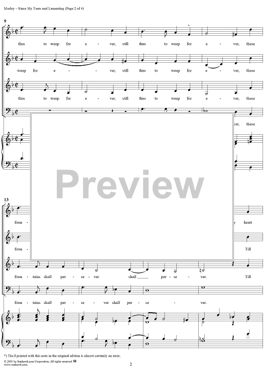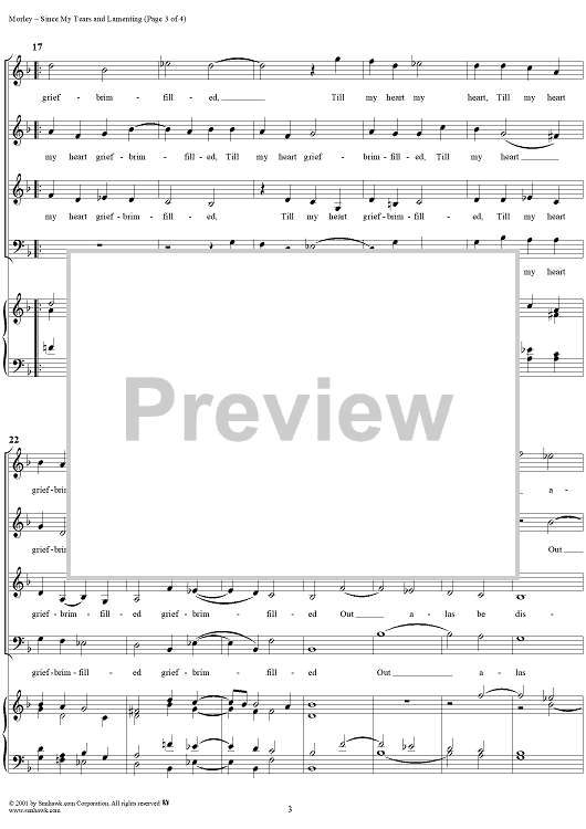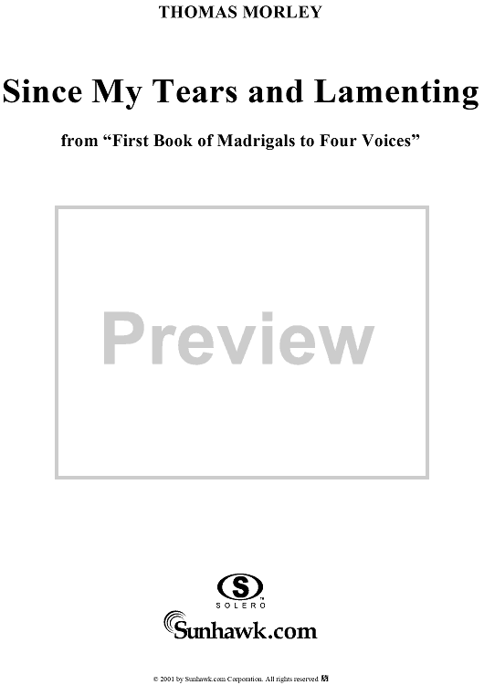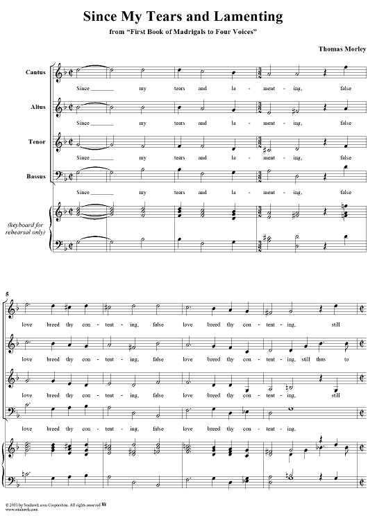 Digital Sheet Music for Since My Tears and Lamenting by Thomas Morley scored for Four-part Mixed Chorus; id:260294