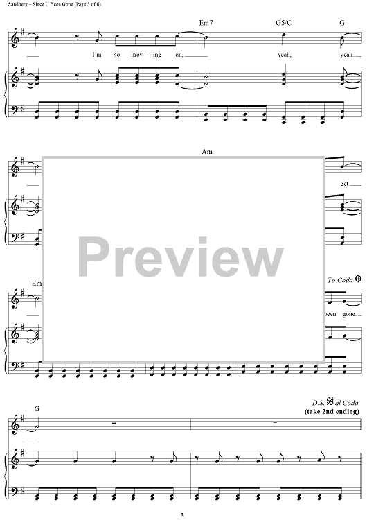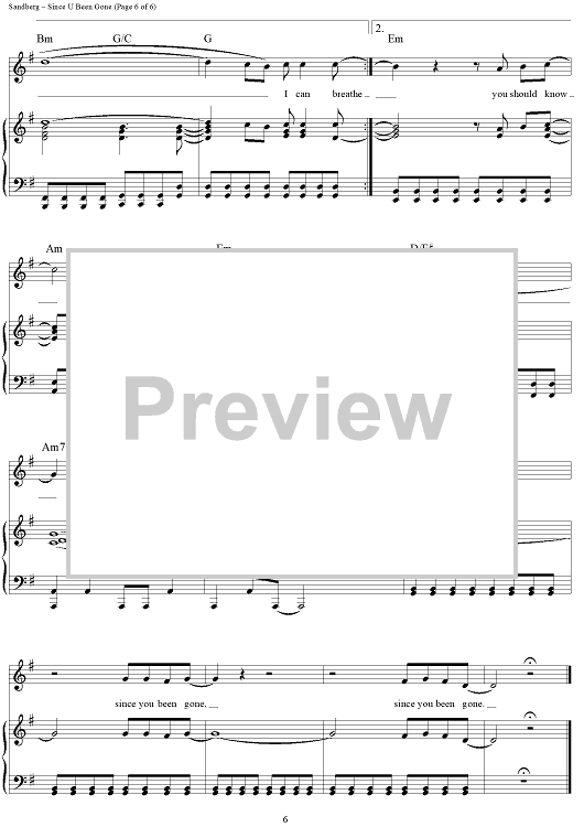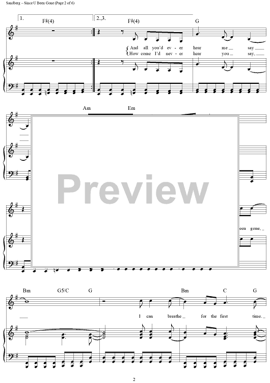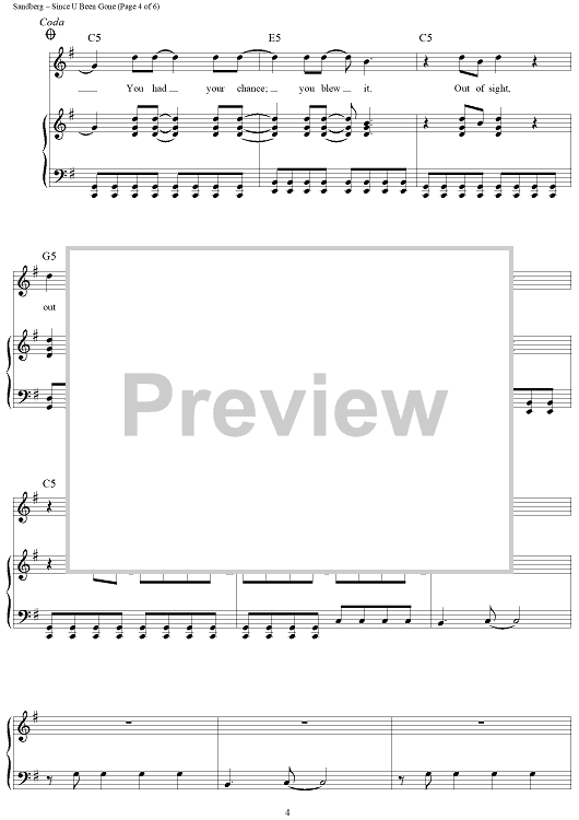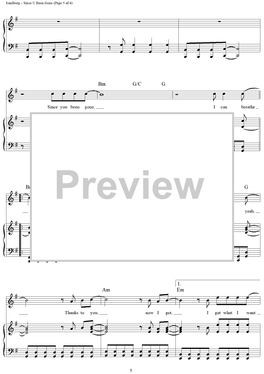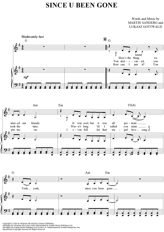 Digital Sheet Music for Since U Been Gone by Martin Sandberg, Kelly Clarkson scored for Piano/Vocal/Chords; id:410141
