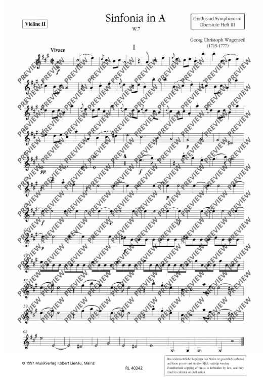 "Sinfonia in A - Violin 2" Sheet Music by Georg Christoph Wagenseil
