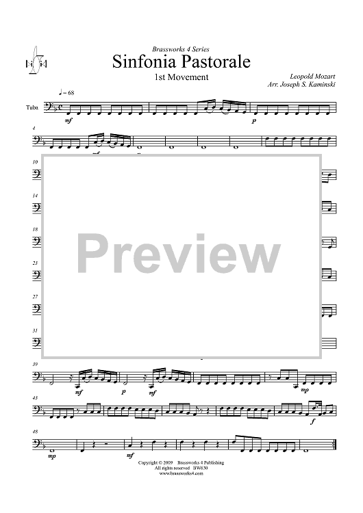 Digital Sheet Music for Sinfonia Pastorale - Tuba by Leopold Mozart, Joseph S. Kaminski scored for Brass Quintet; id:410820