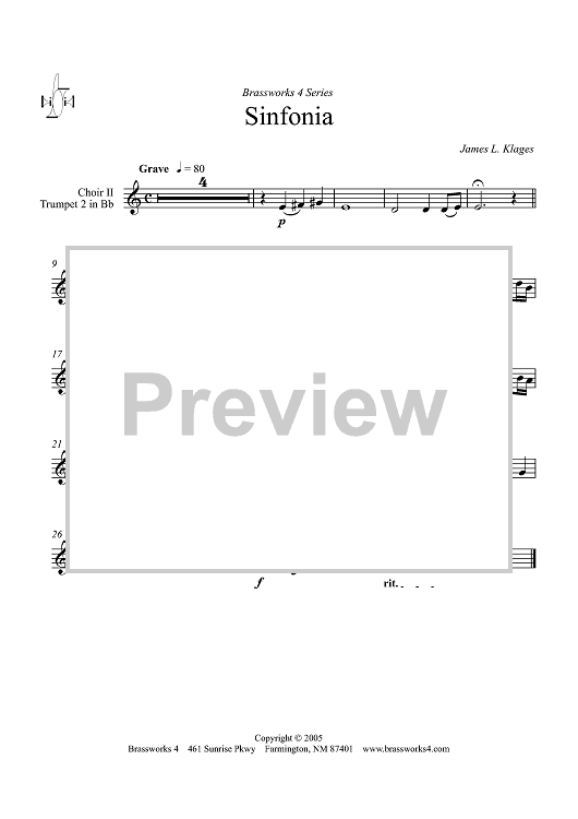 "Sinfonia - Trumpet 2 (Choir 2)" Sheet Music by James Klages