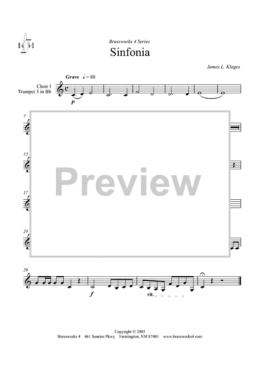 Digital Sheet Music for Sinfonia - Trumpet 3 (Choir 1) by James Klages scored for Trumpet Septet; id:317296