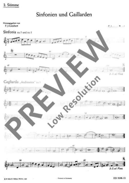 "Sinfonien und Gaillarden - Descant Recorder Ii" Sheet Music by Salomone de Rossi