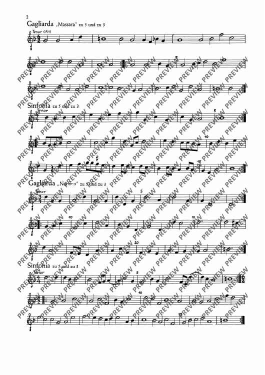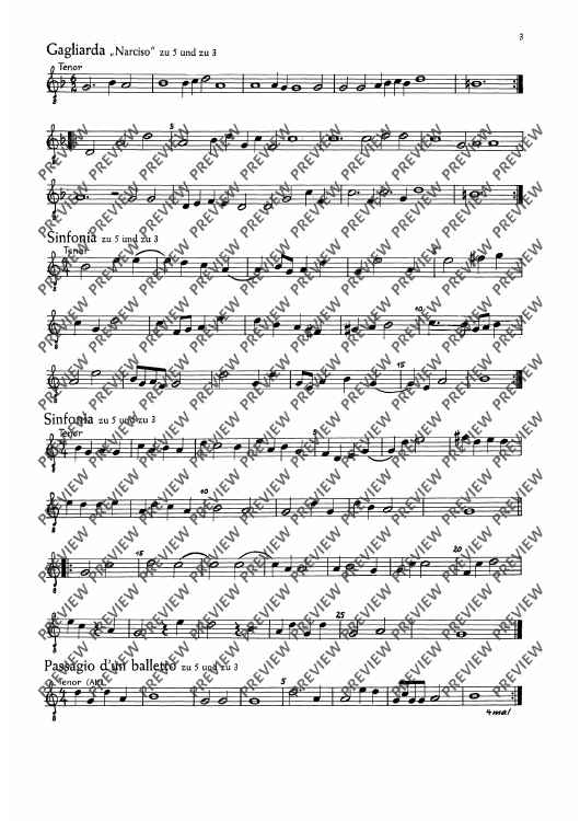 Digital Sheet Music for Sinfonien und Gaillarden - Tenor Recorder by Salomone de Rossi scored for 5 Recorders (ssatb); id:501003
