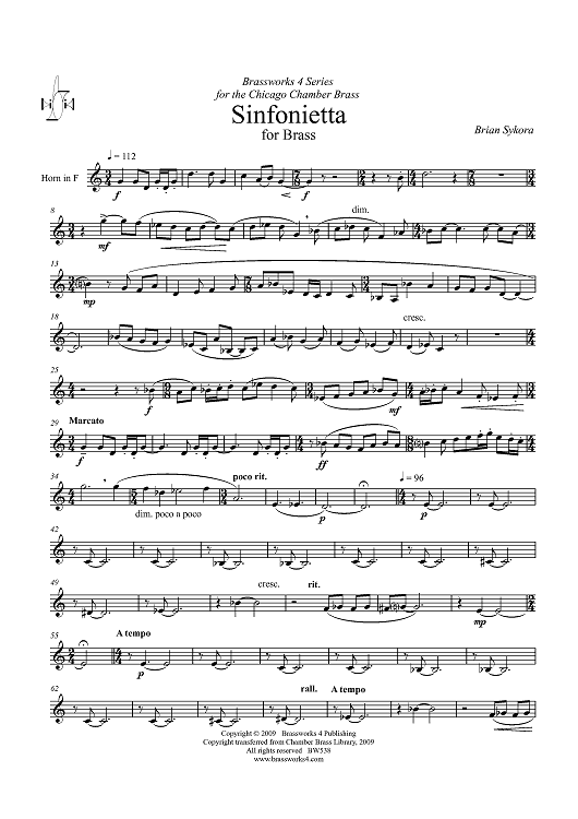 Digital Sheet Music for Sinfonietta - Horn in F by Brian Sykora scored for Brass Quintet; id:410352