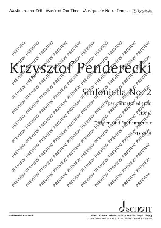 Digital Sheet Music for Sinfonietta No. 2 - Full Score by Krzysztof Penderecki scored for Clarinet And String Orchestra; id:500632