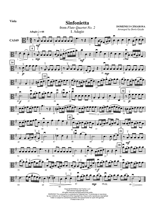 "Sinfonietta - Viola" Sheet Music by Domenico Cimarosa