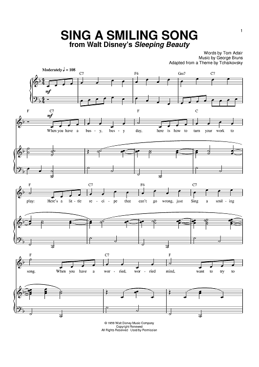 Digital Sheet Music for Sing A Smiling Song by Tom Adair, George Bruns scored for Piano/Vocal/Chords; id:381234