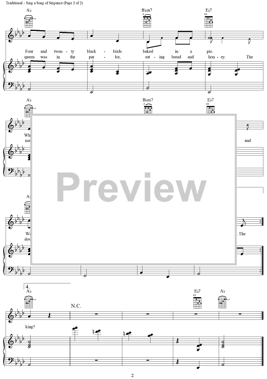 Digital Sheet Music for Sing a Song of Sixpence by Traditional scored for Piano/Vocal/Chords; id:289184