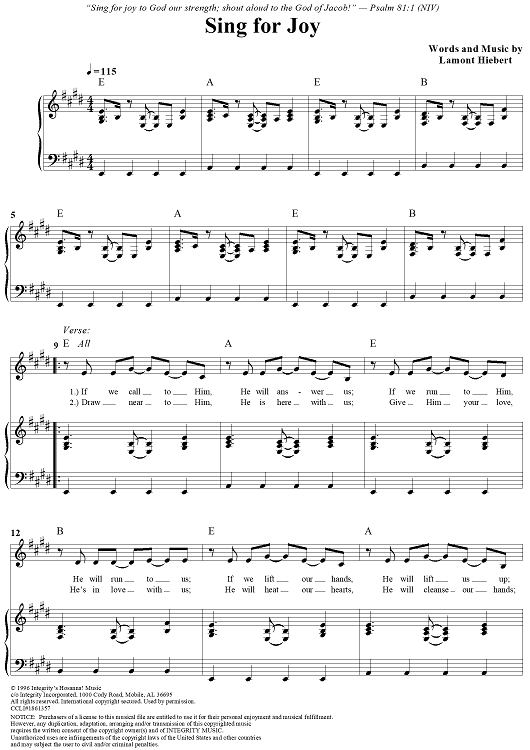 Digital Sheet Music for Sing For Joy by Lamont Hiebert scored for Piano/Vocal/Chords; id:283198