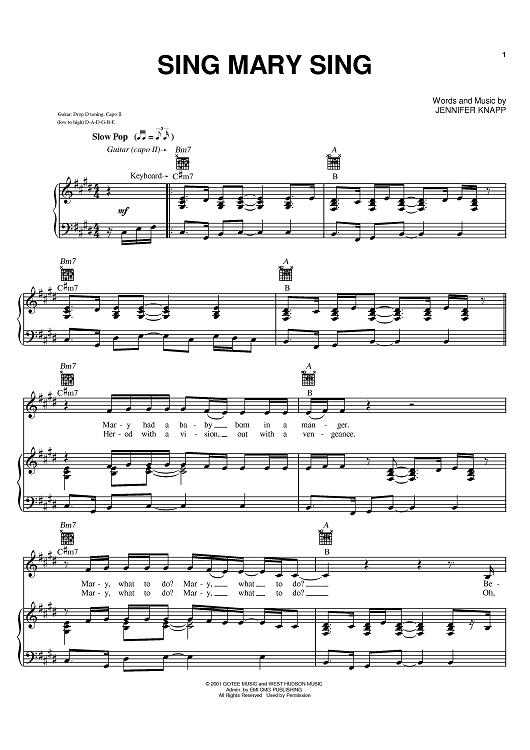 "Sing Mary Sing" Sheet Music by Jennifer Knapp