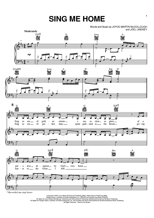 Digital Sheet Music for Sing Me Home by Joel Lindsey, The Martins, Joyce Martin McCollough scored for Piano/Vocal/Chords; id:380457