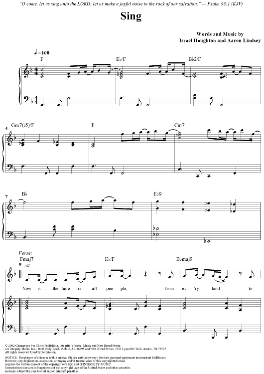 Digital Sheet Music for Sing by Israel Houghton, Aaron Lindsey scored for Piano/Vocal/Chords; id:314549
