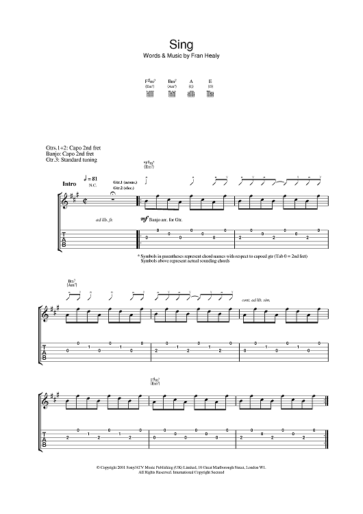 Digital Sheet Music for Sing by Blur, Fran Healy scored for Piano/Vocal/Chords; id:376157