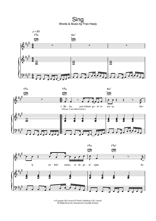 Digital Sheet Music for Sing by Fran Healy, Travis scored for Piano/Vocal/Chords; id:377344