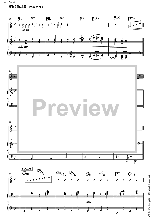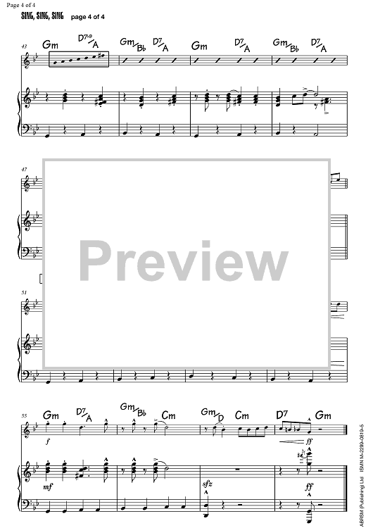 "Sing, Sing, Sing" Sheet Music by Louis Prima