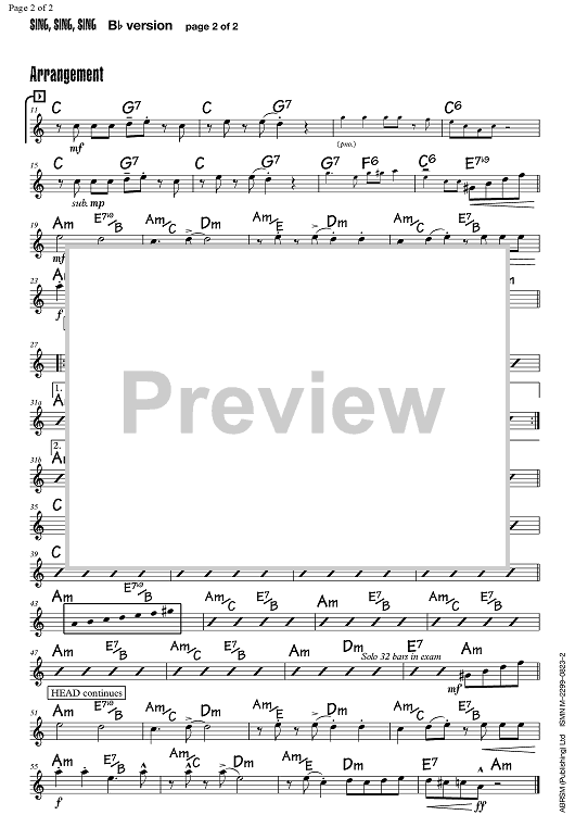 Digital Sheet Music for Sing, Sing, Sing by , Louis Prima, Benny Goodman, Janette Mason scored for B-flat Lead Sheet; id:355631