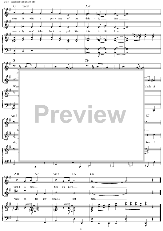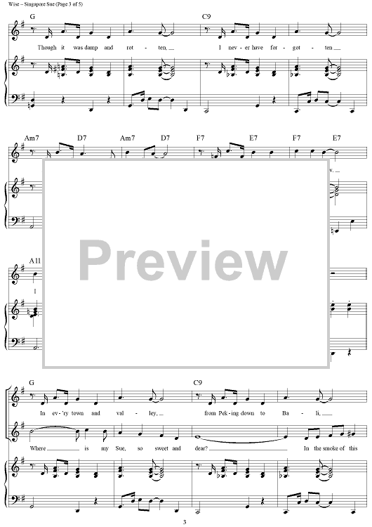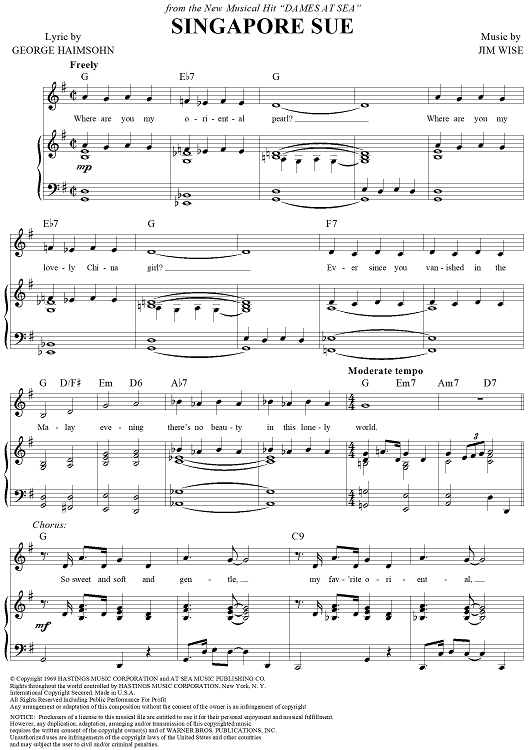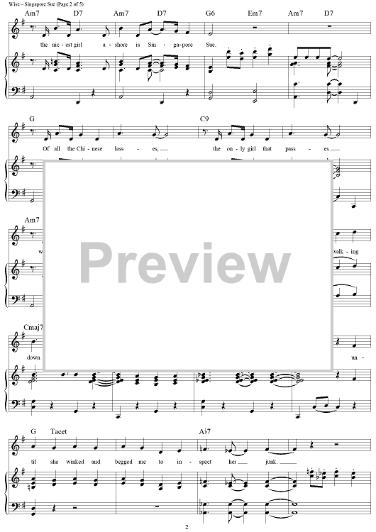 Digital Sheet Music for Singapore Sue by Jim Wise, George Haimsohn scored for Piano/Vocal/Chords; id:312609