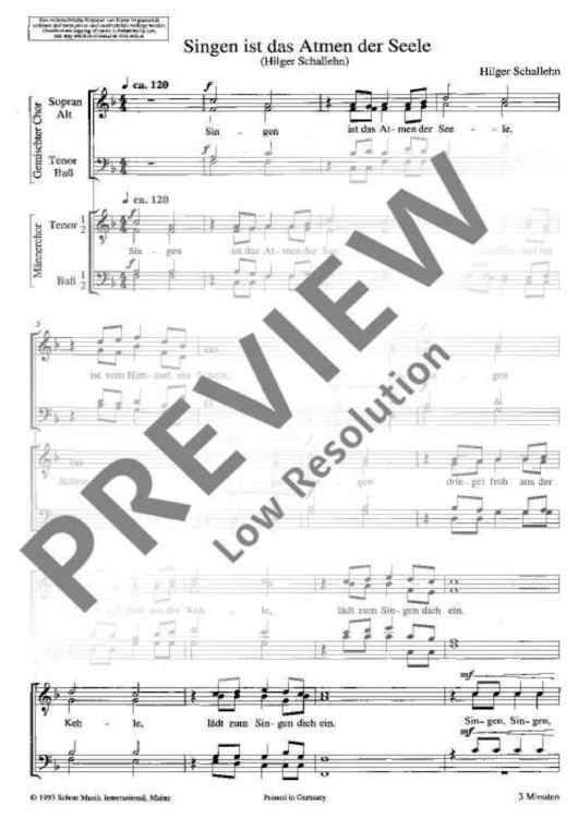 Digital Sheet Music for Singen ist das Atmen der Seele - Choral Score by Hilger Schallehn scored for Mixed Choir (satb) And Men's Choir (ttbb); id:479503
