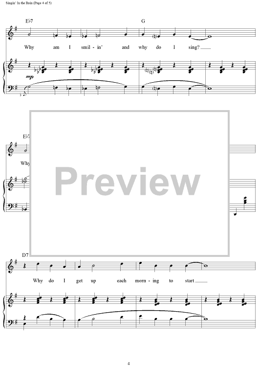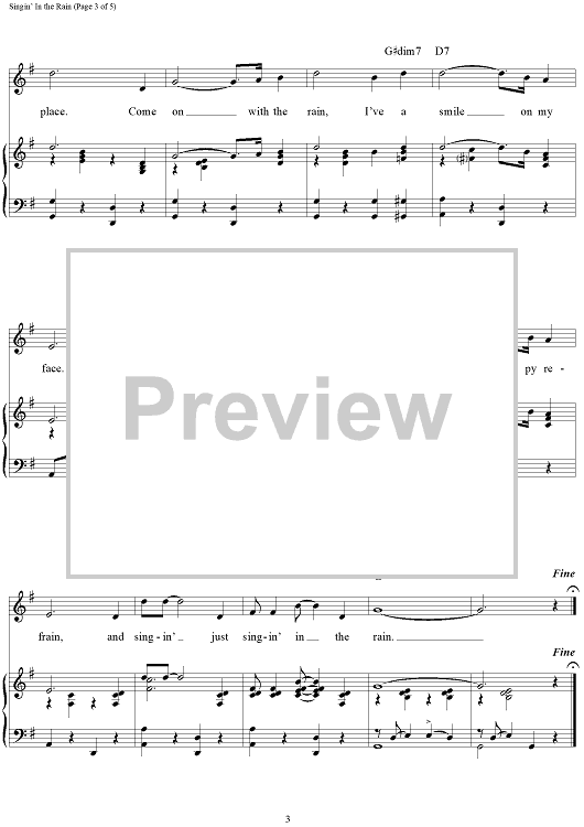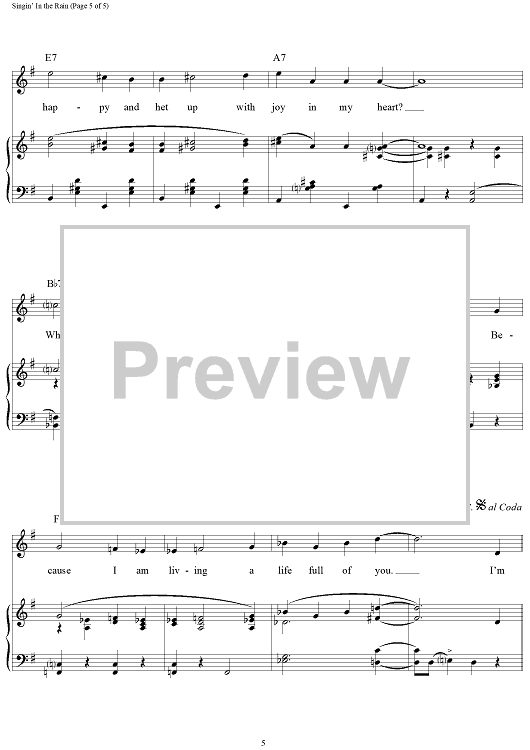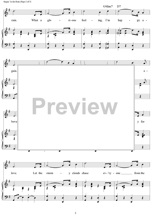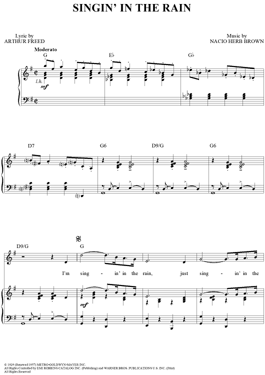 Digital Sheet Music for Singin' in the Rain by Nacio Herb Brown, Gene Kelly, Arthur Freed scored for Piano/Vocal/Chords; id:110722