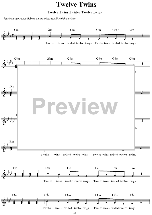 Digital Sheet Music for Singing Tongue Twisters, Section 9: Tr-Vi by Brian J. Kane scored for Piano/Vocal/Chords; id:321334