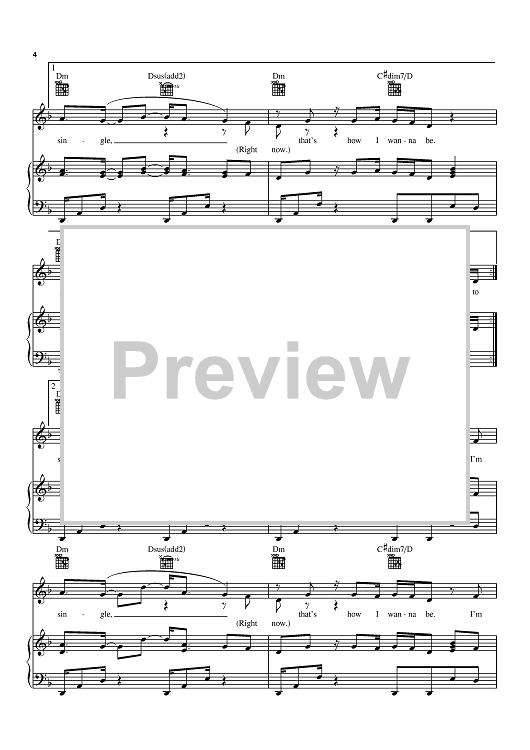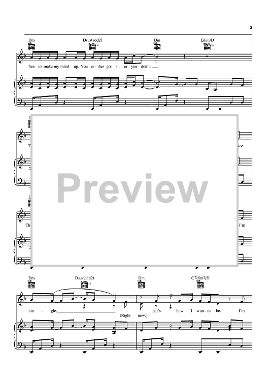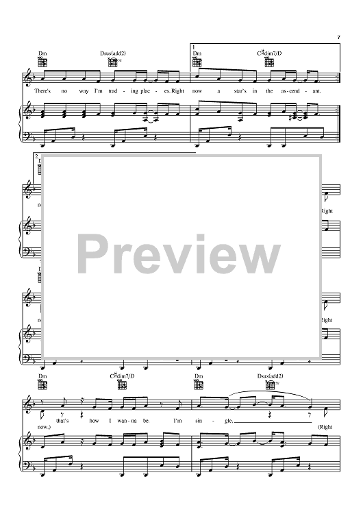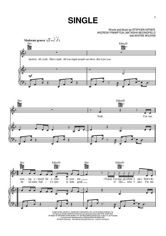 "Single" Sheet Music by Natasha Bedingfield