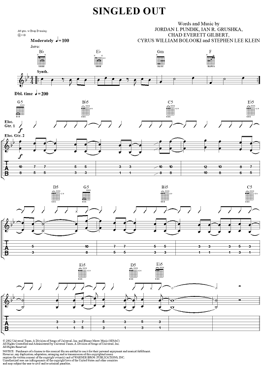 "Singled Out" Sheet Music by New Found Glory