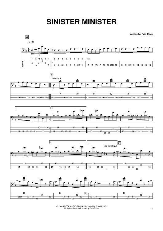 Digital Sheet Music for Sinister Minister by Bela Fleck, The Flecktones, Victor Wooten scored for Bass Tab; id:371826